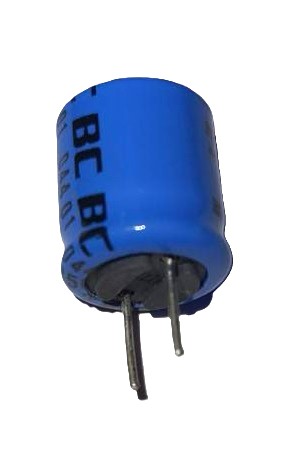 - выполнены с радиальными выводами, в цилиндрическом алюминиевом корпусе (с возможностью сброса давления), полностью изолированные (винил синего цвета);