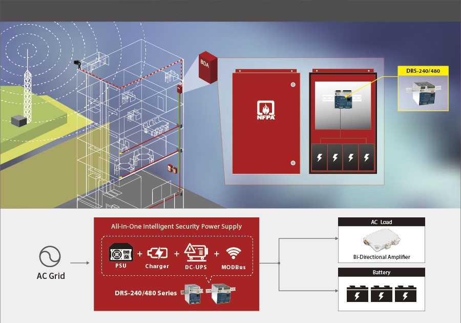 Since 2000, MEAN WELL has been continuously producing new DIN rail type power supplies and accessories. Today, this line of products has already quite diverse and has won a significant market share. In response to the rapid development of complex building architecture, the governments of Europe, the US and China have announced new regulations for security and fire protection systems (EN54-4/ UL2524/ GB17945). MEAN WELL started production of new "smart" power supplies for the DRS-240 and DRS-480 series to meet the needs of the huge market.