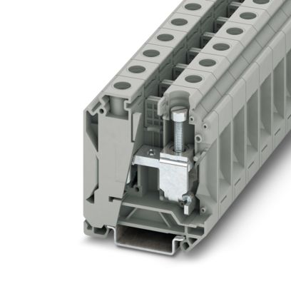 Прохідна клемна колодка, номінальна напруга: 1000 В, номінальний струм: 125 А, кількість підключень: 2, спосіб підключення: гвинтове з'єднання, номінальний поперечний переріз: 35 мм² , поперечний переріз: 10 мм² - 35 мм² , тип монтажу: NS 35/ 7,5 , NS 35/15, колір: сірий