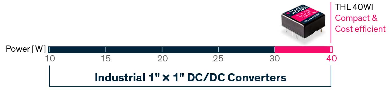 Серія THL 40WI розширює наявний портфель DC/DC перетворювачів Traco Power моделями потужністю 40 Вт у корпусі формату 1”×1”. Вона орієнтована на поєднання ефективності та високої якості та підходить для широкого спектра застосувань. Новинки виконані в залитому, екранованому металевому корпусі розміром 1”×1”×0,43” та мають функції дистанційного ввімкнення/вимкнення і підстроювання вихідної напруги (trim). Високий ККД до 93% дозволяє їм працювати в температурному діапазоні від -40°C до +65°C без зниження потужності. Усі моделі мають широкий діапазон вхідної напруги "4:1" та прецизійно стабілізовані ізольовані виходи. THL 40WI відповідають найновішим вимогам сертифікації з безпеки IT-обладнання (UL 62368-1) і підходять для використання в мобільному обладнанні, вимірювальних приладах, системах розподілу живлення в телекомунікаційній та промисловій електроніці, а також у всіх застосуваннях, де критично важливими є економічність і якість.